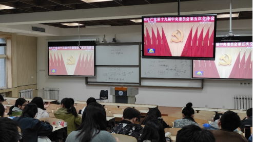 首先,全体学生党员认真观看了中央新闻联播关于十九届五中全会的报道。10月26日至29日,中国共产党第十九届中央委员会第五次全体会议在北京召开,这次全会是在即将实现第一个百年奋斗目标、开启全面建设社会主义现代化国家新征程的时刻召开的一次十分重要的会议。会议审议通过了《中共中央关于制定国民经济和社会发展第十四个五年规划和二〇三五年远景目标的建议》,对二〇三五年目标、“十四五”时期经济社会发展作出了系统谋划和战略部署,对于全面建设社会主义现代化国家新征程具有划时代和里程碑意义。