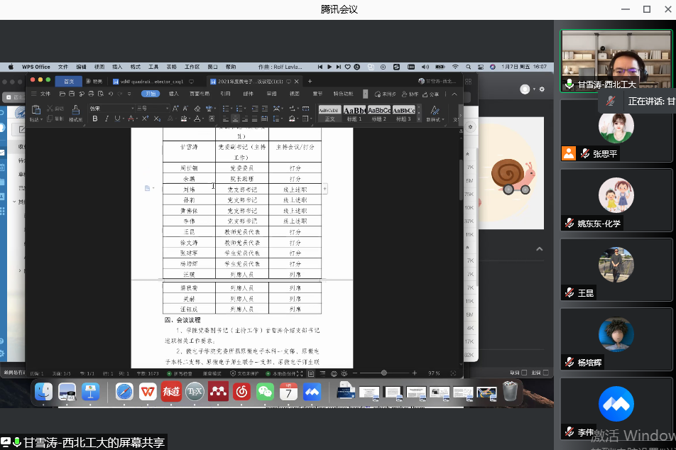 党委开展2021年度党支部书记抓党建工作述职评议工作会议,学院党委副书记(主持工作)甘雪涛、副院长周世钢、化学化工学院党委副书记姚东东(学校督导人员)、学院党支部书记、教师代表、学生代表参加会议。会议由甘雪涛主持,以线上形式开展。