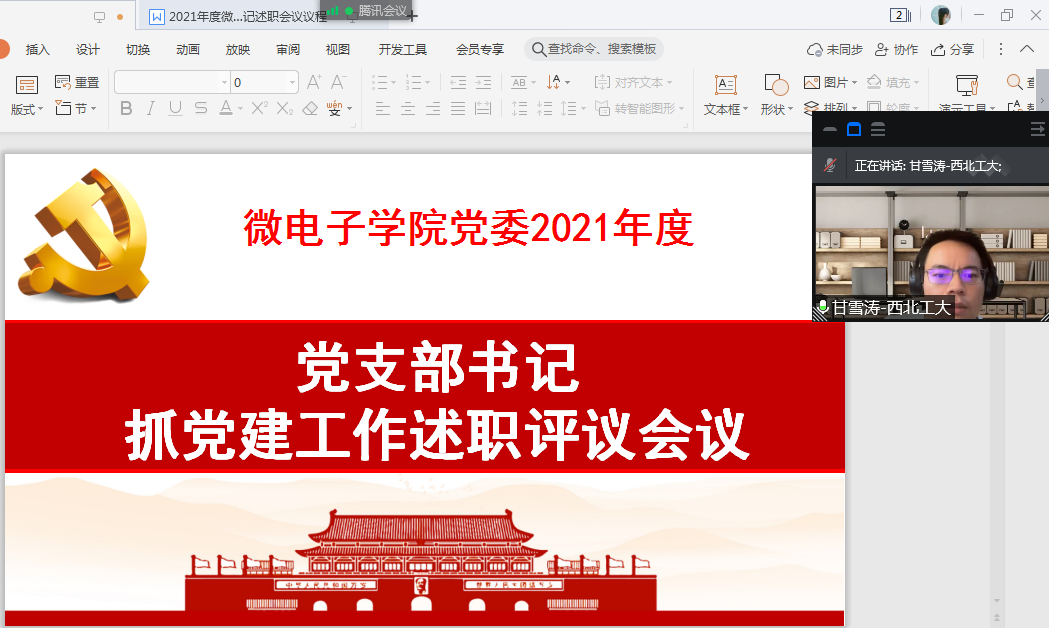 会议开始,甘雪涛介绍此次述职评议考核相关工作要求。甘雪涛表示,此次考核内容主要包括:1.深化习近平新时代中国特色社会主义思想学习教育。2.落实党支部党建工作重点任务。3.强化党支部政治功能。4.做好思想政治工作和意识形态工作。5.推进全面从严治党,加强纪律建设和廉洁教育。希望大家在把握好以上五个方面内容的基础上,将党建其他重点工作纳入述职评议考核主要内容,要突出党支部需要落实的具体任务,但要注意防止面面俱到,泛泛而谈。