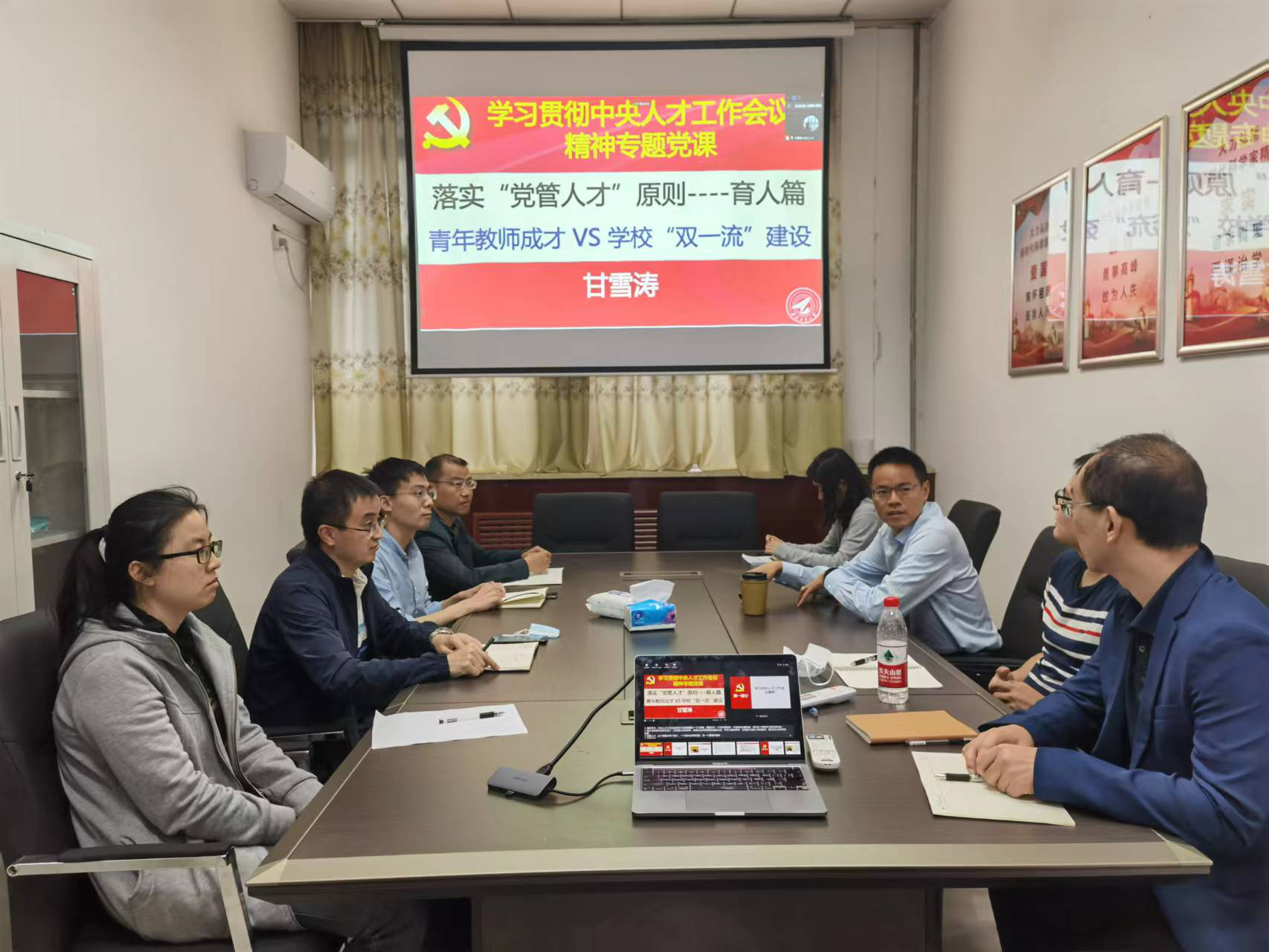 开展学习贯彻中央人才工作会议精神专题党课。本次党课由学院党委书记甘雪涛主讲,学院教工党员线上线下参加。