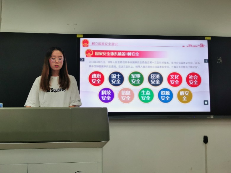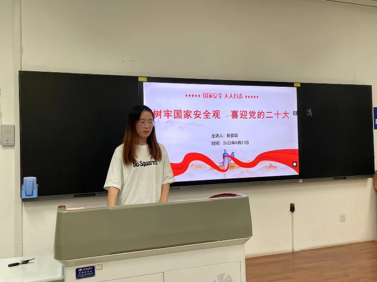 此次党课由微电子本科一支部宣传委员靳紫懿带领大家从树立国家安全意识、不触碰法律红线、生活中我们该怎么做以及保守国家秘密等四方面学习国家安全教育相关内容。
