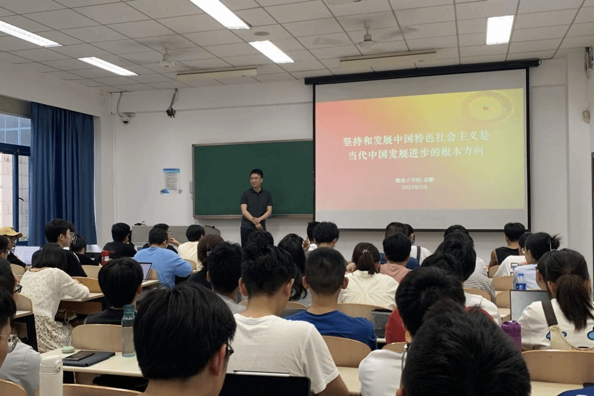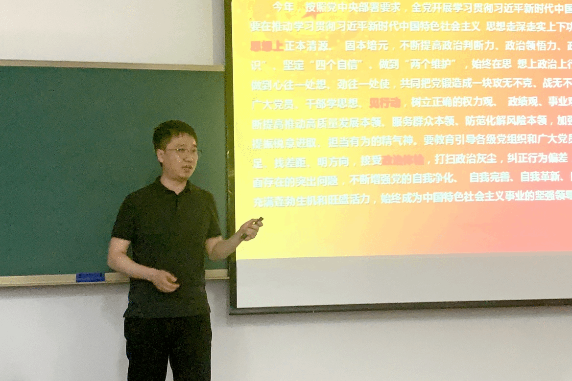 党委副书记余鹏为学院发展对象、积极分子、新转正党员讲授“坚持和发展中国特色社会主义是当代中国发展进步的根本方向”主题党课。