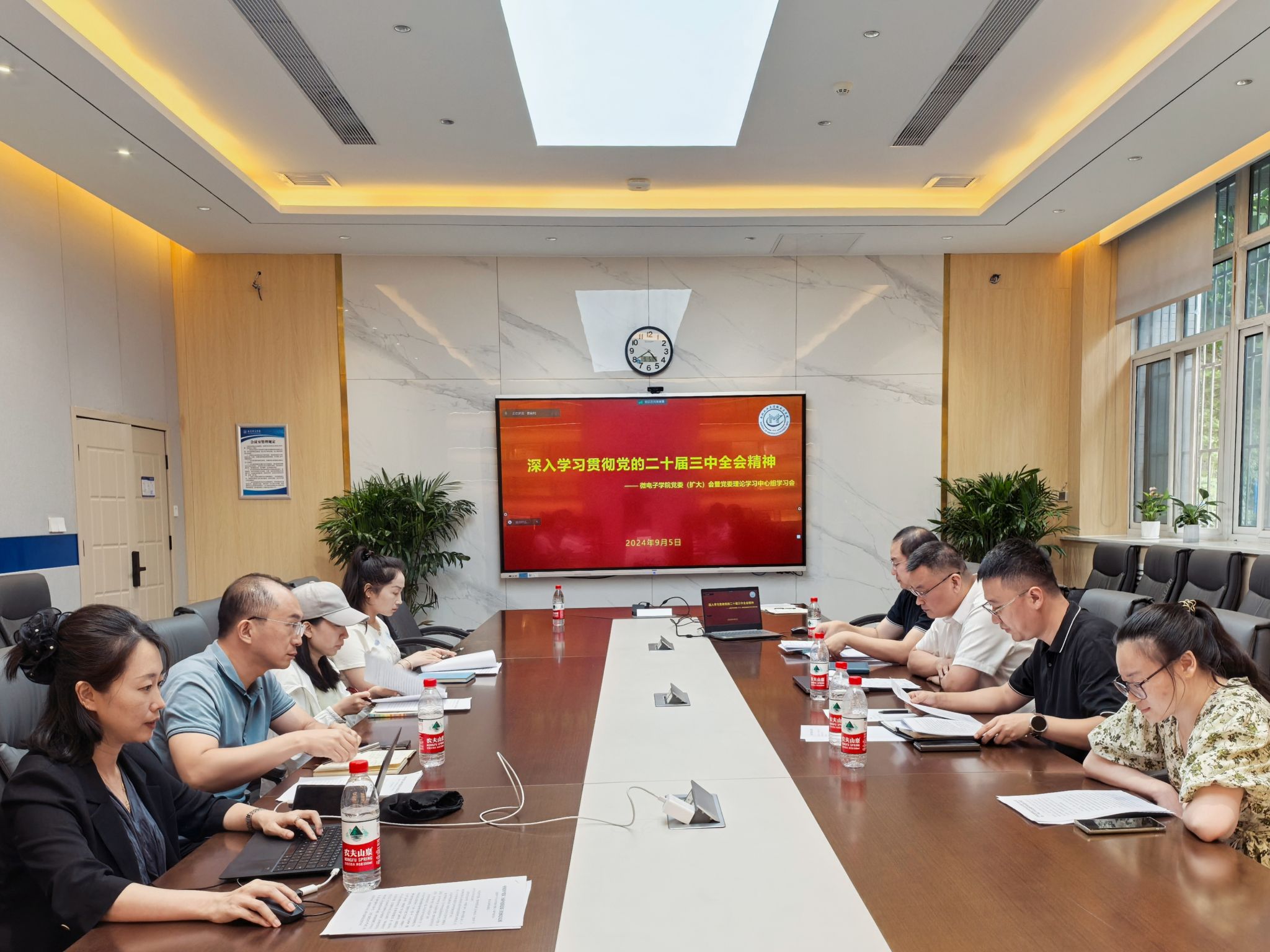 召开党委(扩大)会议暨党委理论学习中心组学习会,学习贯彻党的二十届三中全会精神。学院党委委员和全体党支部书记参会,会议由学院党委副书记余鹏主持。