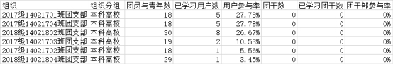 与此同时,部分团支部学习覆盖率比较低,2017级的1、2、3、4班,2018级的2班和4班学习率均低于30%,极大地拖了学院和学校的后腿,在此对以上团支部提出批评,并要求团支书进行学习整改,希望这些团支部在之后的学习中能够提高学习积极性,按时完成学习任务。