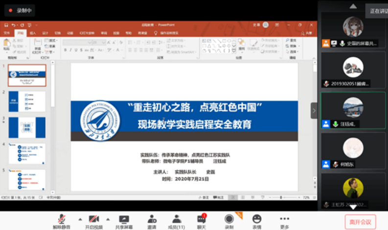 暑期红色现场教学实践队开展了实践启程安全教育,本次主题教育由带队老师汪钰成主持,全体队员参与了此次会议。