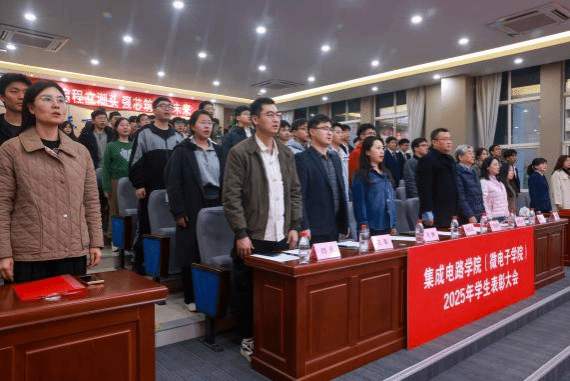 最后,马炳和代表学院向获奖集体和个人表示祝贺,并向全体教职工的辛勤付出致以诚挚谢意。随后,他对同学们提出三点期望:一是要珍惜时光、胸怀家国,深刻体悟和平发展环境的珍贵,将个人成长主动融入科技强国、教育强国的战略进程,在时代变局中校准人生航向;二是要立志总师、锤炼本领,主动对接集成电路、后摩尔时代等国家战略急需,在跨学科融合中锻造领军人才硬实力;三是要勇立潮头、全面发展,拥抱全链条认知、全球化视野、全方位成长,在AI引领的工业变革中争做科技自立自强的排头兵,书写有品质、有担当的青春篇章。