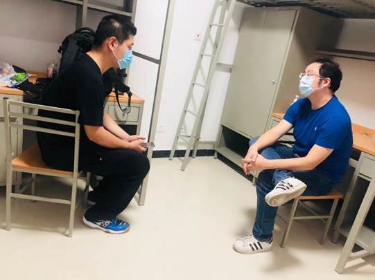 副书记彭蓉、F1辅导员阴玥走访学生宿舍,看望慰问学院第一批返校学生,并对学院疫情防控工作进行强调与落实。