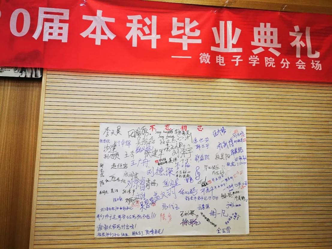 2020届本科毕业典礼暨学位授予仪式在友谊校区阶二会议厅举行,祝贺全体微电子本科毕业生圆满完成学业任务,获得学士学位。学院副院长王少熙,党委副书记彭蓉,教师代表马彦昭、毕业班辅导员阴玥和全体本科毕业生参加毕业典礼,辅导员阴玥主持仪式现场。