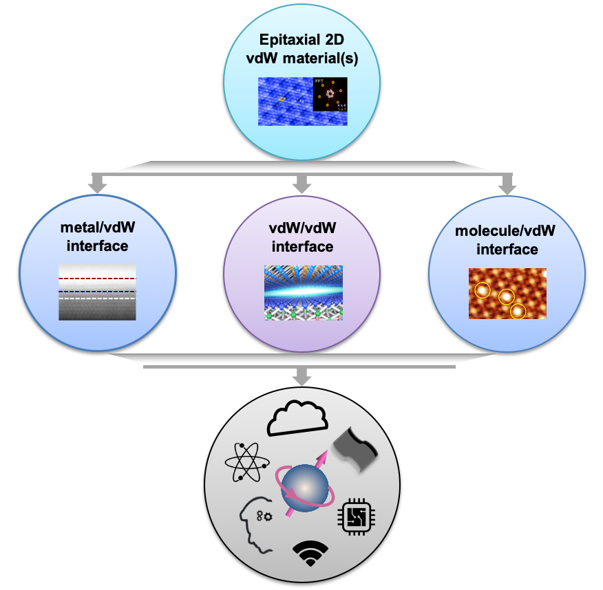 随着电子器件的不断缩小,自旋电子学以及二维范德华材料等新技术、新材料越来越受到重视。响应此形势,该综述对(磁性)范德华材料及界面在自旋电子学中的应用进行了评估;并针对目前存在的材料表征、器件制备、以及电路集成方面的问题,提出一种以分子束外延为基础的原位生长以及原位表征的策略(称为“全原位”策略),以获取洁净的、原子尺度可控的范德华界面。综述列举了本团队及世界其它先进小组近年来在此领域取得的相关研究成果,包括但不限于“铁磁/范德华”界面、“分子/范德华”界面、“范德华/范德华”界面。同时,文章还从CMOS集成的现状出发,阐明了现下该领域面临的主要挑战,并指出通过“全原位”策略实现的范德华界面在未来量子计算、柔性自旋电子学、神经形态计算和人工智能等领域具有值得期待的应用机遇与前景。
