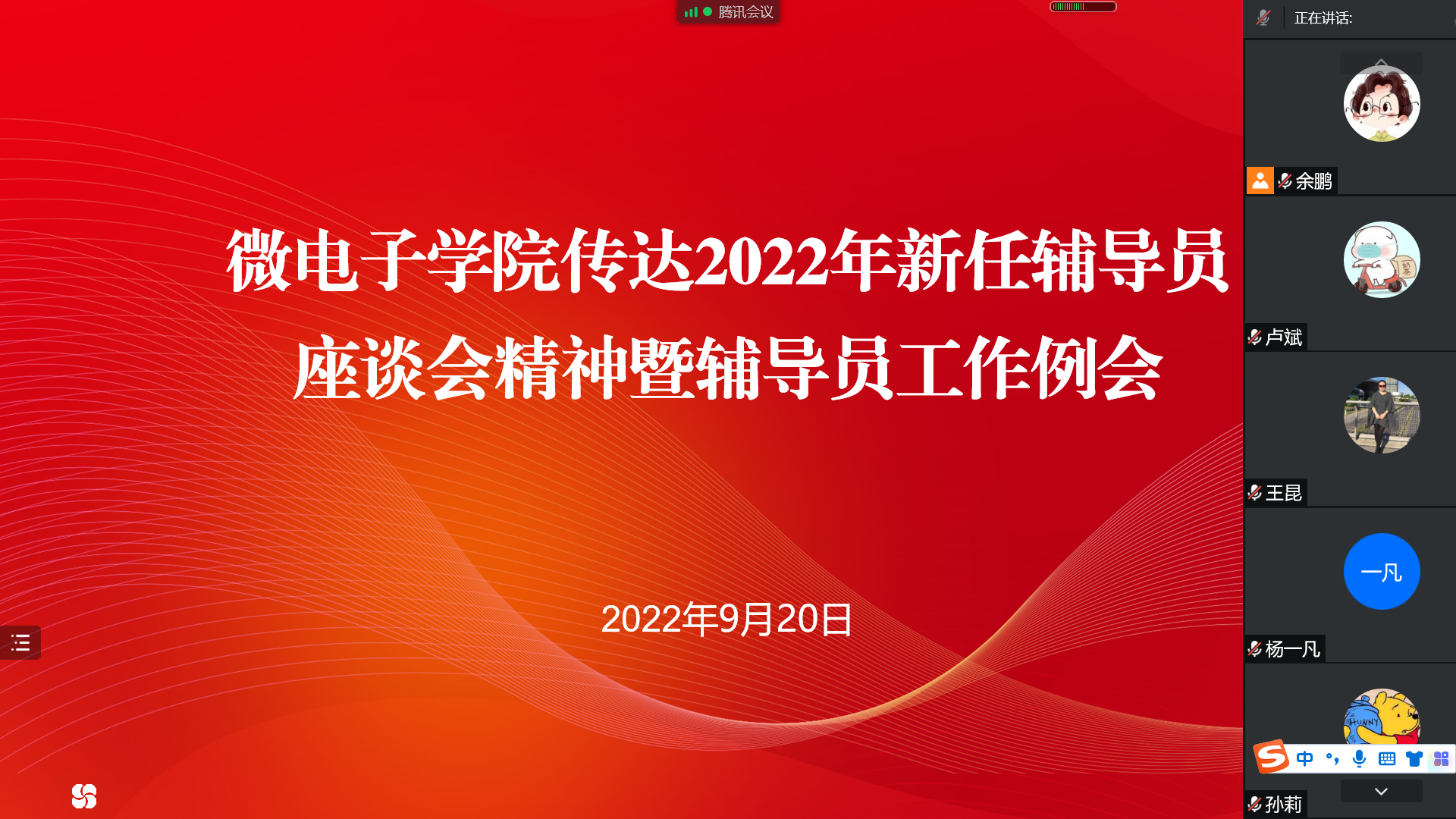 召开2022年新任辅导员座谈会精神传达部署会暨安全稳定工作会。会议由学院党委副书记余鹏主持,学院专职辅导员、兼职辅导员参加。