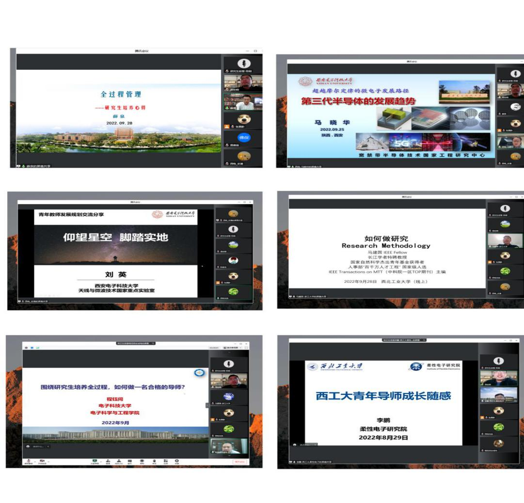 副院长马晓华教授以《超越摩尔定律的微电子发展路径--第三代半导体的发展趋势》为题,从微电子和集成电路的角度讲述了自己团队的研究以及研究生培养的经验;西安电子科技大学天线与微波技术重点实验室主任刘英教授以《仰望星空,脚踏实地》为题从科学研究、传承精神、立德树人和展望寄语四个方面讲述了青年导师要认真学习,以身作则,当好研究生成长的引路人;浙江大学微纳电子学院副院长(主持工作)马建国教授以《如何做研究Research Methodology》为题讲述了研究生教育的方法;电子科技大学电子科学与工程学院副院长程钰间教授围绕研究生的招生、课堂教学、过程培养和毕业的全过程,探讨如何做一名合格的导师;韩国伦理