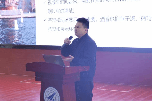 随后,陈黎介绍了大赛情况。他从历届赛事规模及影响力、分赛区决赛与产学活动以及第七届集创赛时间安排等进行了详细介绍,并给参赛学生提供了一些宝贵的建议,希望学生们能够明确参赛目的,合理安排整个参赛流程,充分利用赛事资源,拓展行业视野。