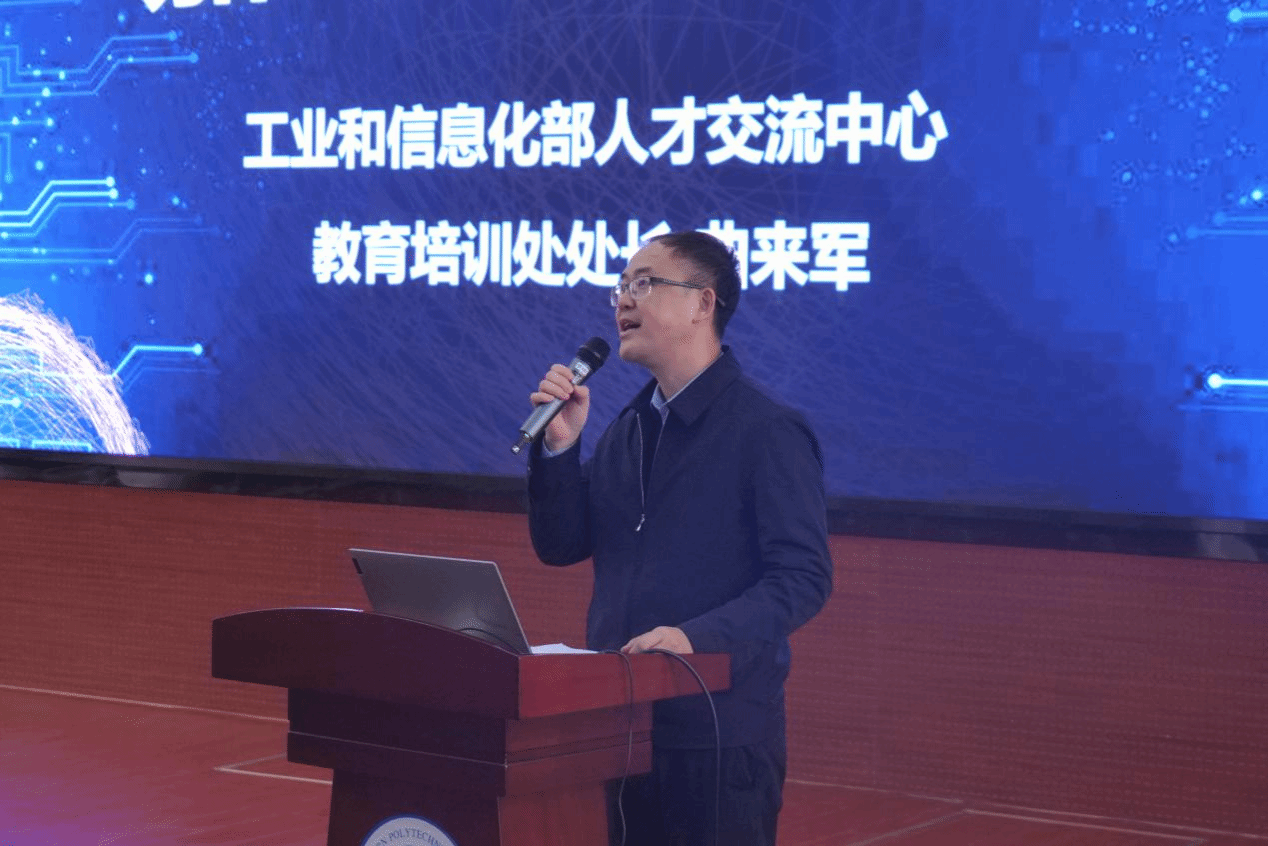 接着,曲来军致辞。他指出,集成电路产业是信息技术产业的核心,是支撑经济社会发展和保障国家安全的战略性、基础性和先导性产业。加快集成电路产业发展,对国家经济发展、国家安全和国防建设意义极其重要。希望通过“集创赛”的举办,进一步推动人才培养和职业发展始终与产业的最新需求同频共振,为集成电路产业发展提供人才储备。