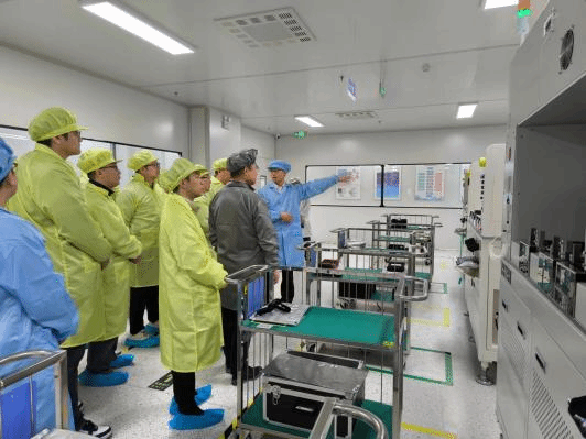 交流伊始,马炳和一行参观了公司展厅及测试线,详细了解了公司的发展历程、生产模式及未来规划。