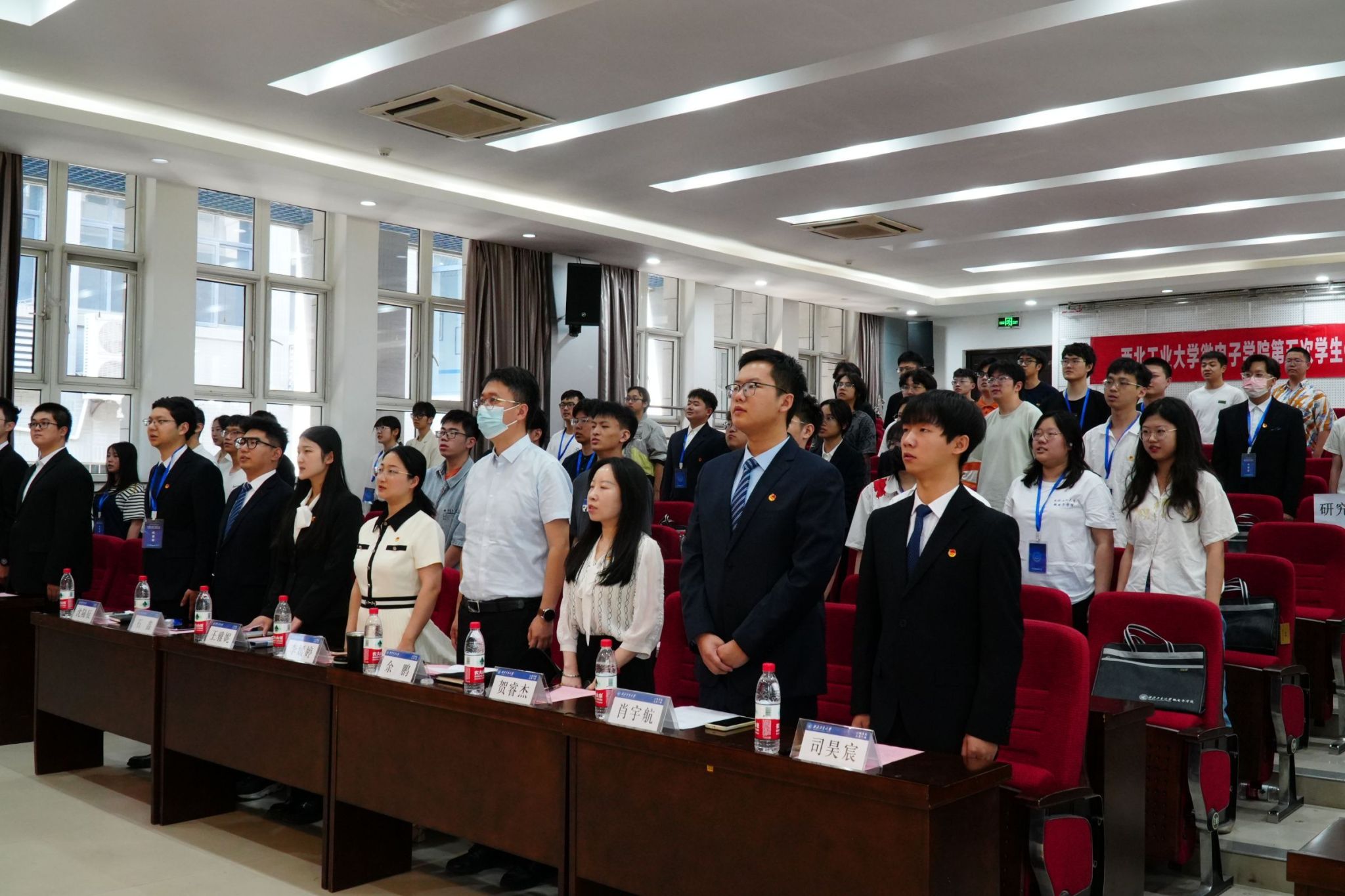 第五次学生代表大会暨第四次研究生代表大会正式拉开序幕。校学生会主席团成员肖宇航致辞,肖宇航分享了自己在校学生会的工作经验,希望同学们能够筑牢青春根基、书写人生华章,强调学生会应全心全意服务同学,并衷心祝愿本次会议顺利召开。随后,校研究生会主席团成员王雅妮发言。王雅妮提到三个“聚焦”——聚焦政治引领、聚焦形神兼备、聚焦主责主业,呼吁同学们团结在党的周围,发扬总师育人文化。