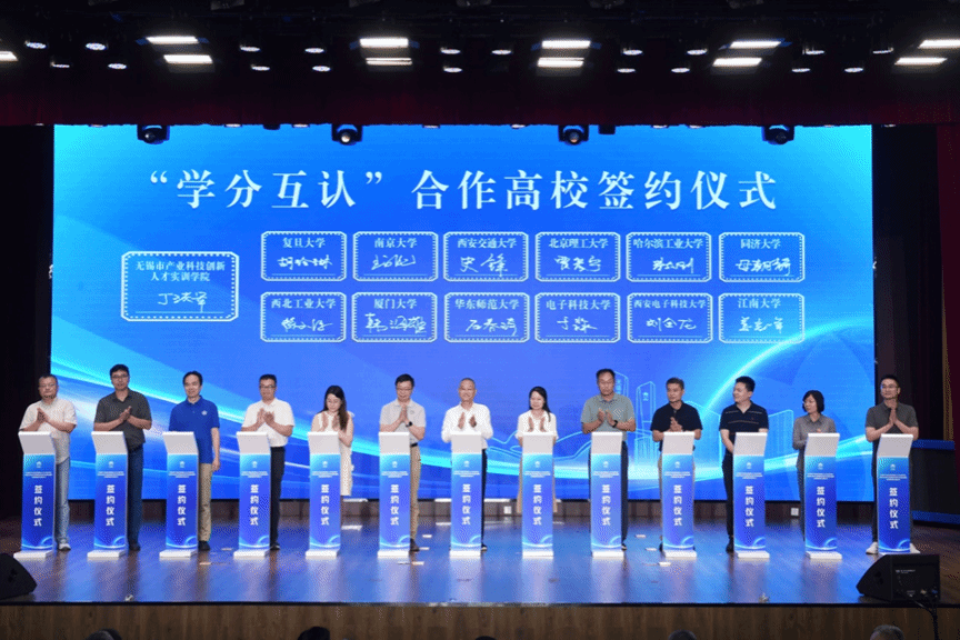 教师徐文涛带队,与无锡高新区产业人才实训学院完成“学分互认”签约仪式,将专业培养课程体系中的实习环节和产业人才实训学院的培训内容相互贯通,共同参加签约仪式的还有复旦大学、南京大学、西安交通大学、北京理工大学、电子科技大学、西安电子科技大学等12所高校。