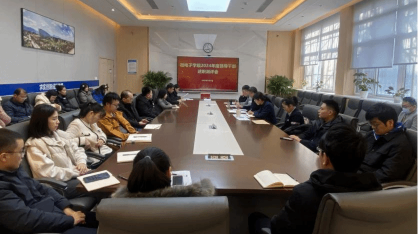 分别召开2024年度领导干部、办公室人员述职测评会,学院领导班子成员、全体教职工及学生代表参加会议。会议分别由学院党委书记杨妮花、副书记余鹏主持。