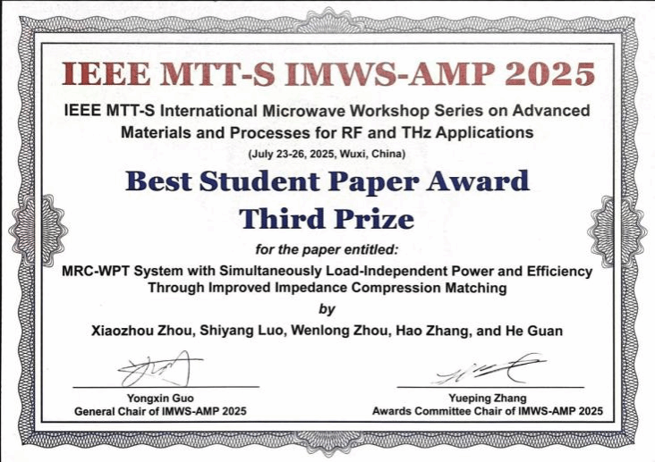 2025年7月23至26日,江苏省产业技术研究院和香港城市大学青岛研究院主办的国际微波系列研讨会(IEEE MTT-S International Microwave Workshop Series on Advanced Materials and Processes for RF and THz Applications)在江苏省无锡市成功召开。经过评审,会议最终评选出来自悉尼大学、上海交通大学、东南大学、电子科技大学和韩国伦理