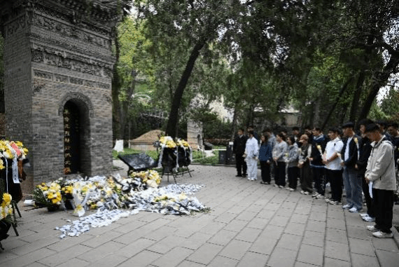 在集体献花仪式上,全体师生于杨虎城将军墓碑前肃立默哀一分钟,怀着无比崇敬的心情向革命先烈深深鞠躬,随后依次缓步敬献鲜花,寄托对革命先烈的无尽追思与崇高敬意。